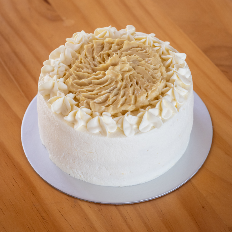 A luxurious cake celebrating the creamy, aromatic king of fruits. Silky durian filling paired with delicate génoise sponge and smooth crème fraîche. A must-try for durian enthusiasts.